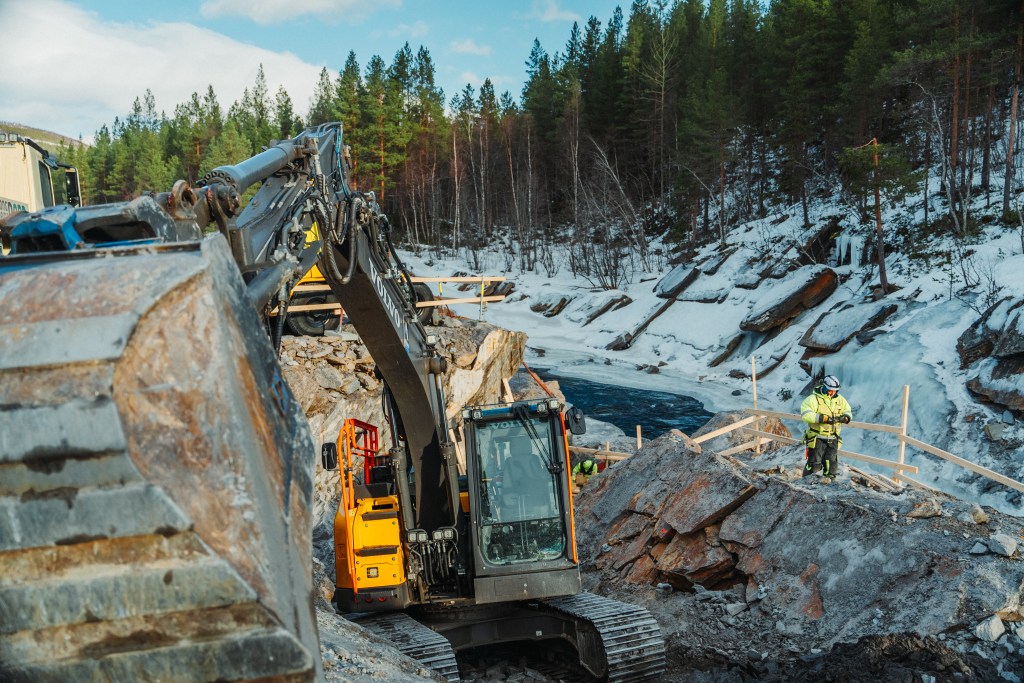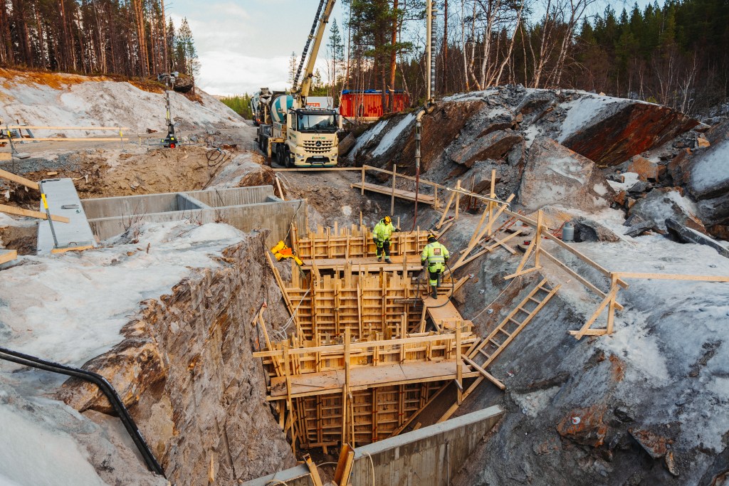 Vinter og vår 2024 var vi i Beiarn for å bygge ny laksetrapp. Dette er et prosjekt som kombinerer utfordrende grunnarbeid og betongarbeid, noe vi trives veldig godt med. Laksetrappens byggetrinn 1 er fullført, og vi er klare til å starte opp igjen med byggetrinn 2 etter nærme avtale med byggherren.